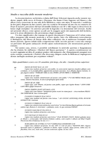 La documentazione archivistica redatta dall’Abate Schenoni riguarda anche monete mo-