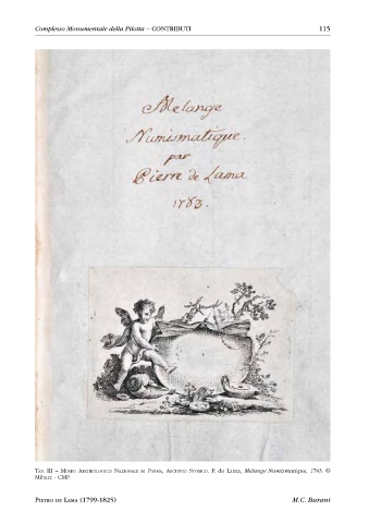 Complesso Monumentale della Pilotta – CONTRIBUTI 115 Tav. iii – Museo archeoloGico NazioNale di ParMa, archivio sTorico. P. de Lama, Melange Numismatique, 1783. © Mibact - CMP. PIETRO DE LAMA (1799-1825) M.C. Burani