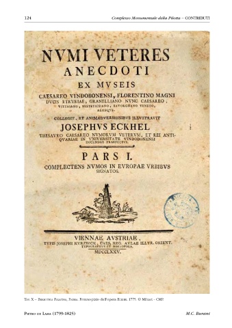 124 Complesso Monumentale della Pilotta – CONTRIBUTI Tav. X – biblioTeca PalaTiNa, ParMa. Frontespizio dell’opera eckhel 1775. © Mibact - CMP. PIETRO DE LAMA (1799-1825) M.C. Burani