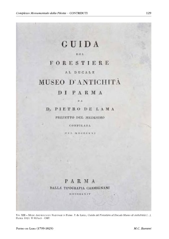 Complesso Monumentale della Pilotta – CONTRIBUTI 129 Tav. Xiii – Museo archeoloGico NazioNale di ParMa. P. de Lama, Guida del Forestiere al Ducale Museo di Antichitià (...), Parma 1824. © Mibact - CMP. PIETRO DE LAMA (1799-1825) M.C. Burani
