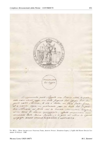 Complesso Monumentale della Pilotta – CONTRIBUTI 161 Tav. iii b – Museo archeoloGico NazioNale ParMa, archivio sTorico. Direzione Lopez, 1, Sigillo del Museo Ducale Par- mense. © Mibact - CMP. MIChELE LOPEz (1825-1867) M.C. Burani