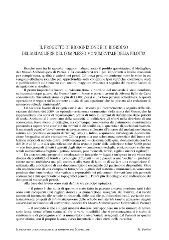 IL PROGETTO DI RICOGNIzIONE E DI RIORDINO DEL MEDAGLIERE M. Podini