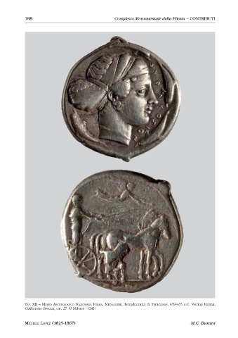 188 Complesso Monumentale della Pilotta – CONTRIBUTI Tav. Xii – Museo archeoloGico NazioNale, ParMa, MedaGliere. Tetradramma di Syracusae, 439-435 a.C. Vetrina Parma, Collezione Strozzi, cat. 27. © Mibact - CMP. MIChELE LOPEz (1825-1867) M.C. Burani