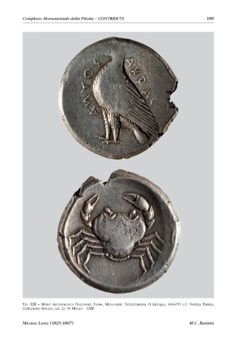 Complesso Monumentale della Pilotta – CONTRIBUTI 189 Tav. Xiii – Museo archeoloGico NazioNale, ParMa, MedaGliere. Tetradramma di Akragas, 460-450 a.C. Vetrina Parma, Collezione Strozzi, cat. 21. © Mibact - CMP. MIChELE LOPEz (1825-1867) M.C. Burani
