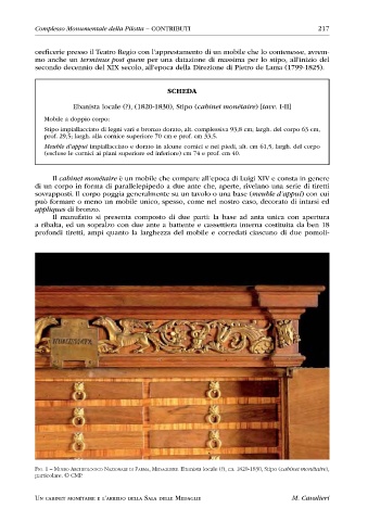 FiG. 1 – Museo archeoloGico NazioNale di ParMa, MedaGliere. Ebanista locale (?), ca. 1820-1830, Stipo (cabinet monétaire),