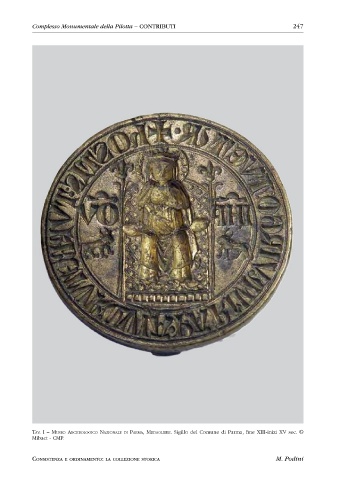 Complesso Monumentale della Pilotta – CONTRIBUTI 247 Tav. i – Museo archeoloGico NazioNale di ParMa, MedaGliere. Sigillo del Comune di Parma, fine XIII-inizi XV sec. © Mibact - CMP. CONSISTENzA E ORDINAMENTO: LA COLLEzIONE STORICA M. Podini