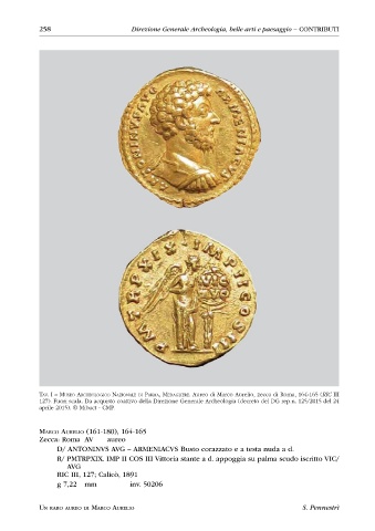 Tav. i – Museo archeoloGico NazioNale di ParMa, MedaGliere. Aureo di Marco Aurelio, zecca di Roma, 164-165 (RIC III