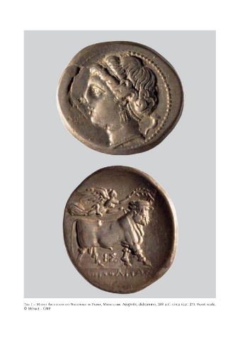 Tav. i – Museo archeoloGico NazioNale di ParMa, MedaGliere. Neapolis, didrammo, 300 a.C. circa (cat. 27). Fuori scala. © Mibact - CMP.