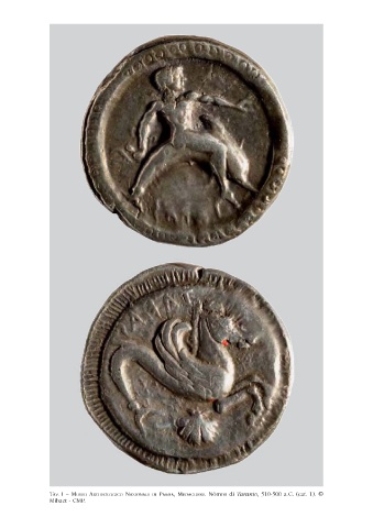 Tav. i – Museo archeoloGico NazioNale di ParMa, MedaGliere. Nòmos di Taranto, 510-500 a.C. (cat. 1). © Mibact - CMP.