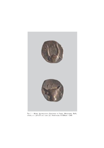 Tav. i – Museo archeoloGico NazioNale di ParMa, MedaGliere. Rubi, obolo, c.c. 325-275 a.C. (cat. 33). Fuori scala. © Mibact - CMP.