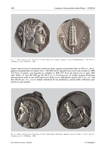 stateri ripercorrono le principali emissioni degli argenti metapontini fino al 290 a.C.; da se-