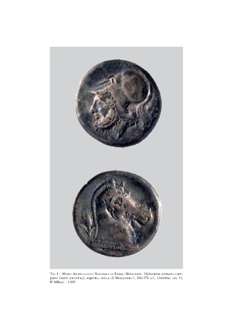 Tav. i – Museo archeoloGico NazioNale di ParMa, MedaGliere. Didramma romano-cam- pano (serie anonima), argento, zecca di Metaponto ?, 280-276 a.C. (Vetrine, cat. 1). © Mibact - CMP.