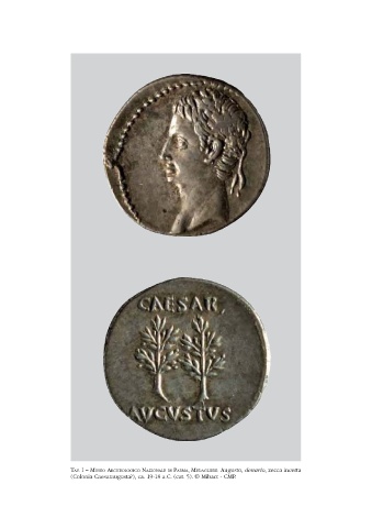 Tav. i – Museo archeoloGico NazioNale di ParMa, MedaGliere. Augusto, denario, zecca incerta (Colonia Caesaraugusta?), ca. 19-18 a.C. (cat. 5). © Mibact - cMP.