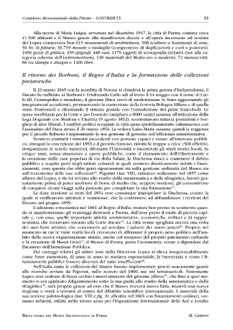 BREVE STORIA DEL MUSEO ARChEOLOGICO DI PARMA M. Catarsi