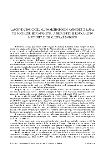 L’ARChIVIO STORICO DEL MUSEO ARChEOLOGICO NAzIONALE DI PARMA R. Conversi