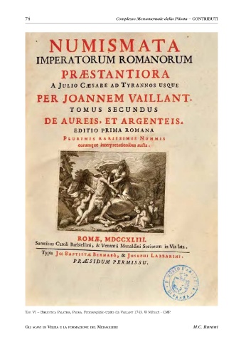 74 Complesso Monumentale della Pilotta – CONTRIBUTI Tav. vi – biblioTeca PalaTiNa, ParMa. Frontespizio tratto da VaillaNT 1743. © Mibact - CMP. GLI SCAVI DI VELEIA E LA fORMAzIONE DEL MEDAGLIERE M.C. Burani