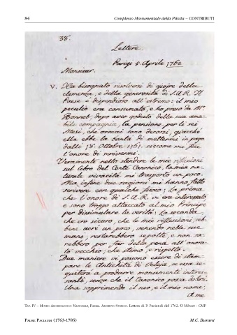 84 Complesso Monumentale della Pilotta – CONTRIBUTI Tav. iv – Museo archeoloGico NazioNale, ParMa. archivio sTorico. Lettera di P. Paciaudi del 1762. © Mibact - CMP. PADRE PACIAUDI (1763-1785) M.C. Burani