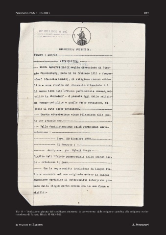 Tav. ii – Traduzione giurata del certificato attestante la conversione dalla religione cattolica alla religione serbo-