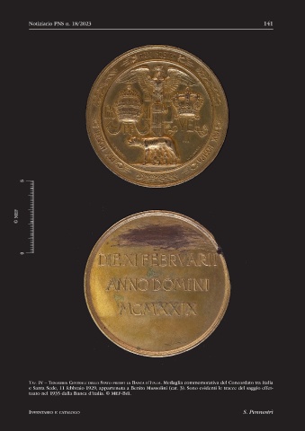 Tav. IV – teSoreria Centrale dello Stato PreSSo la BanCa d’italia. Medaglia commemorativa del Concordato tra Italia