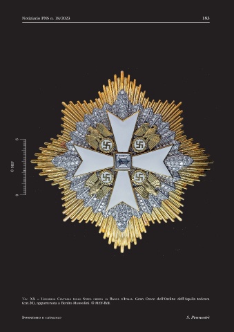 Tav. XX – teSoreria Centrale dello Stato PreSSo la BanCa d’italia. Gran Croce dell’Ordine dell’Aquila tedesca
