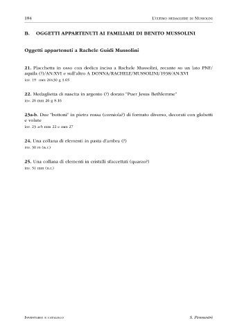 B. OGGETTI APPARTENUTI AI FAMILIARI DI BENITO MUSSOLINI