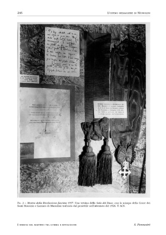 fig. 2 – Mostra della Rivoluzione fascista 1937. Una vetrina della Sala del Duce, con la sciarpa della Croce dei