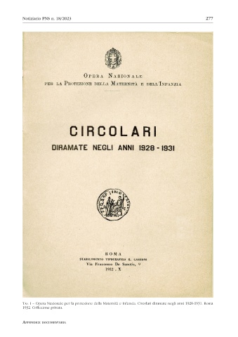 Tav. I – Opera Nazionale per la protezione della Maternità e Infanzia. Circolari diramate negli anni 1928-1931. Roma