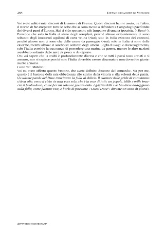 sulla folla, come fiamme vive, e l’urlo di passione: « Duce! Duce! » diviene un inno di gloria).