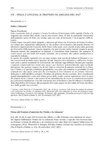 e di commercio fra l’Italia e la Lituania (355), Mussolini offre una colazione in onore del professor Augu-