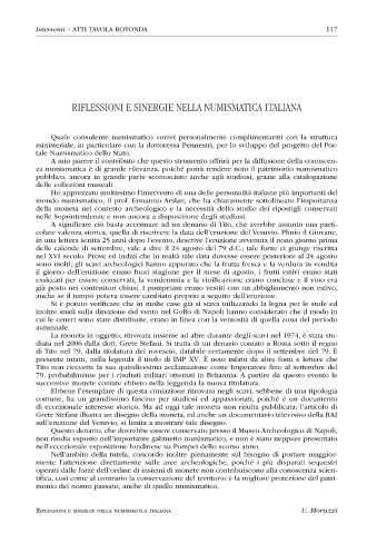 riFLessioni sinergie neLLa numismatiCa itaLiana U. Moruzzi