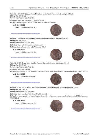 170 Soprintendenza per i Beni Archeologici della Puglia – VETRINE E ITINERARI