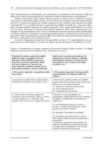 tabeLLa 1. Prospetto per la lettura comparata dei testi dei ‘Principi’ delle Circolare ’74 e degli