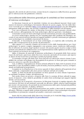 184 Direzione Generale per le Antichità – DOSSIER