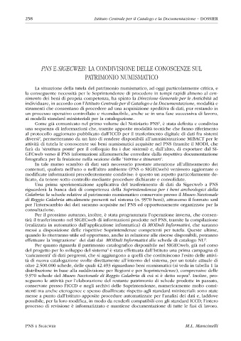 258 Istituto Centrale per il Catalogo e la Documentazione – DOSSIER
