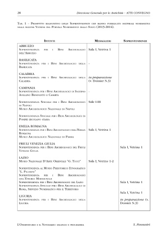 tab. 1 – prospetto riassuntivo deLLe soprintendenze Che hanno pubbLiCato materiaLi numismatiCi